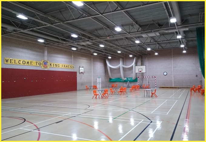 The magnificent 450 sq m (5,000 sq ft) sports hall was built as part of major